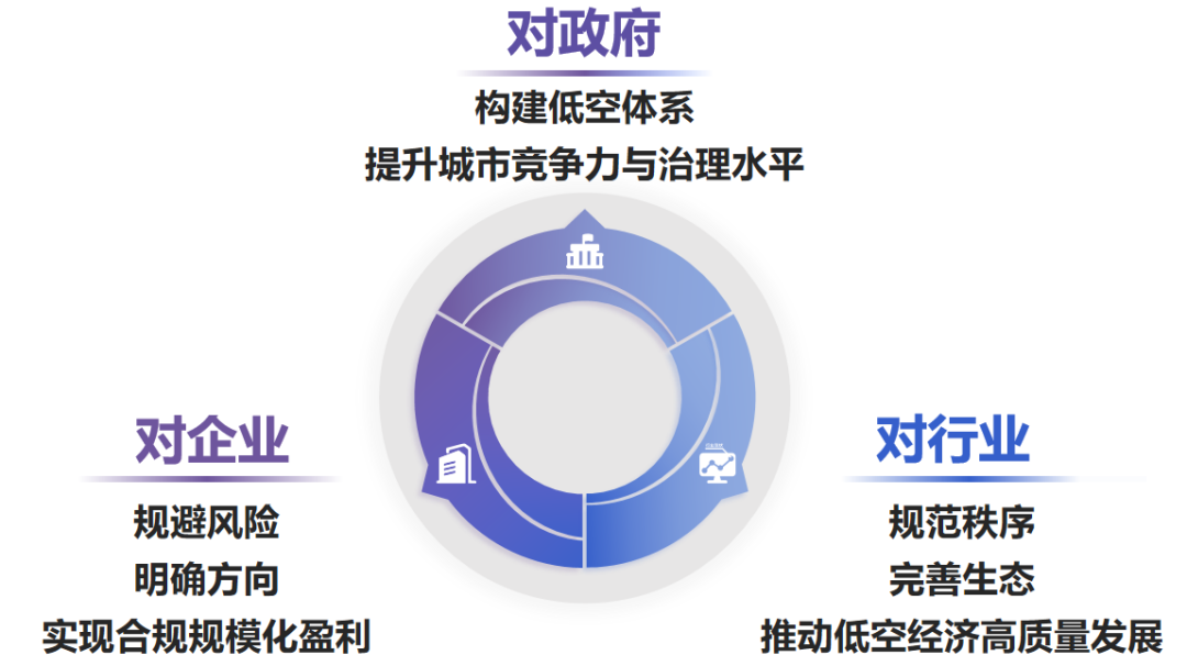 ● 解决:区域低空定位模糊、布局零散,资源禀赋研判不足、部门协同不畅,导致资源浪费、产业难以集聚。