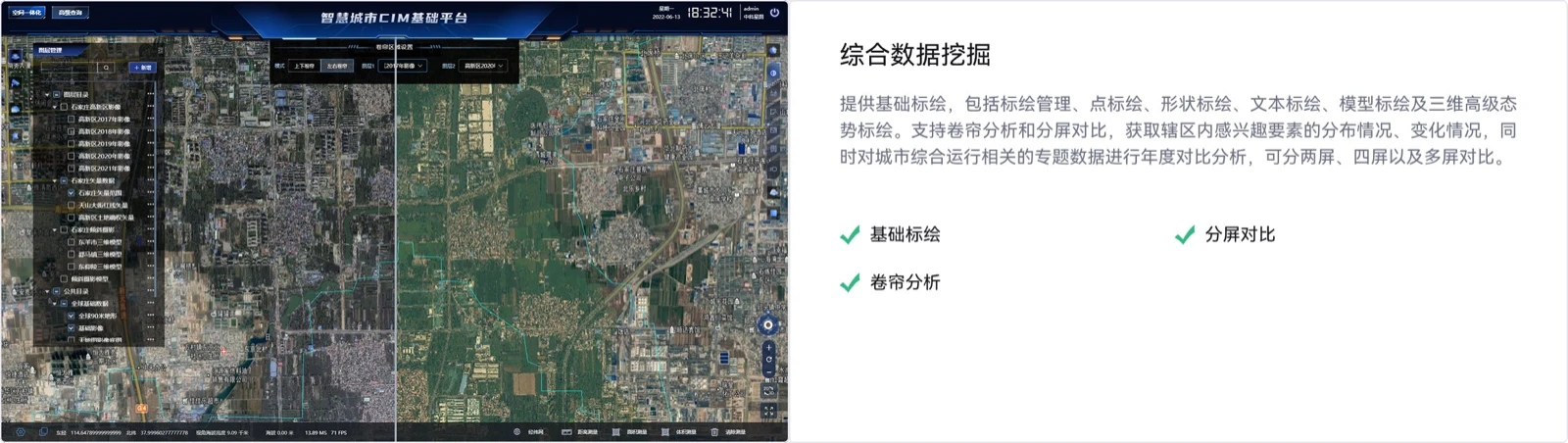智慧城市CIM基础平台,实现城市地上地下、室内室外、历史现状未来多维多尺度信息模型数据的管理、分析、渲染和多模式交互,支撑了建设项目审批、拆迁管理、城市体检、智慧管网等CIM+应用,服务城市“规、建、管”各环节的应用场景,服务智慧城市建设的推进。