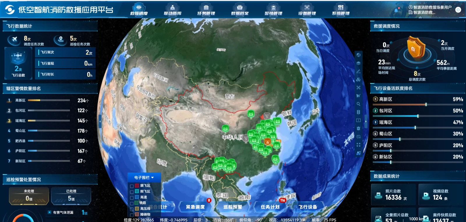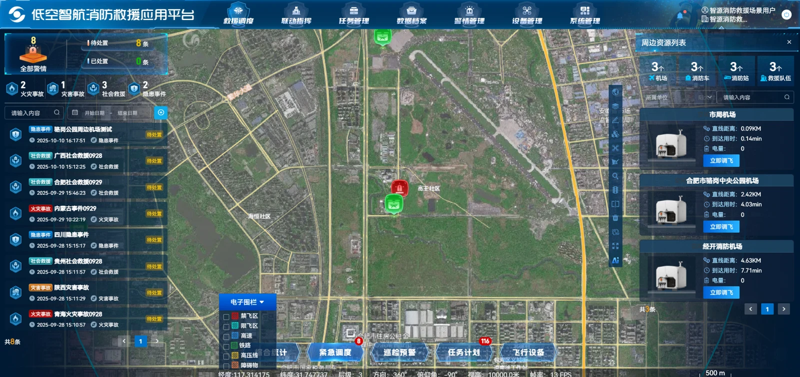 立足于“科技赋能应急、数据驱动决策”的核心理念,通过构建“低空感知网络+智能分析平台+多场景应用”的三层架构,系统性地破解传统消防救援在响应效率、监测精度与协同处置方面的现实困境。平台以无人机全自动机场和多功能载荷构建的低空感知网络为基底,以指挥调度、任务管理与智能分析为核心,重点围绕火情侦查、人员搜救、灾情评估、日常巡检等关键业务场景,打造覆盖城市消防、灾害救援、人员搜救等全方位的消防救援应用体系,实现从灾情感知到智能研判、从任务下发到现场处置的闭环管理,重塑“精准感知、智能决策、高效处置”的消防救援新格局,实现应急响应效能的倍增。